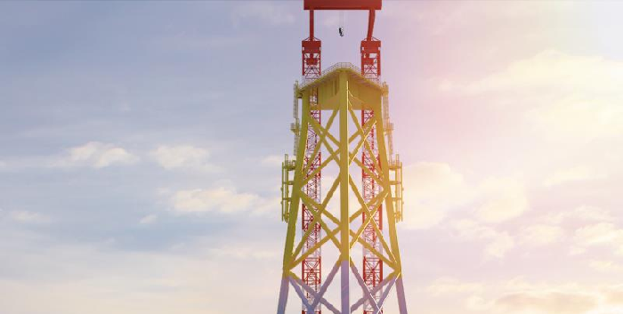 長樂外海海上風電場 C 區項目位于福州市長樂區東部海域、閩江口南岸,場址距離長 樂海岸線 31 千米~ 50 千米海域,平均水深 37 米~ 45 米。福建船政承接該項目 25 套吸 力式導管架制作工程,其中單套三筒導管架高度近百米,底部最大尺寸超 40 米,單套導管 架最大重量約 1200 噸。